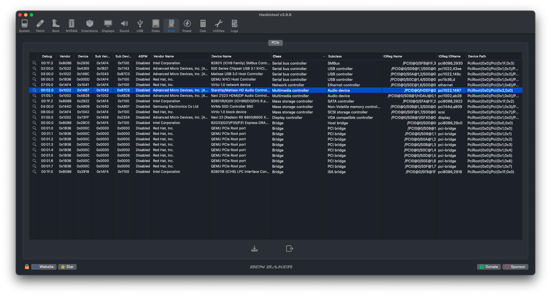 Open Hackintool and navigate to the PCI Section.